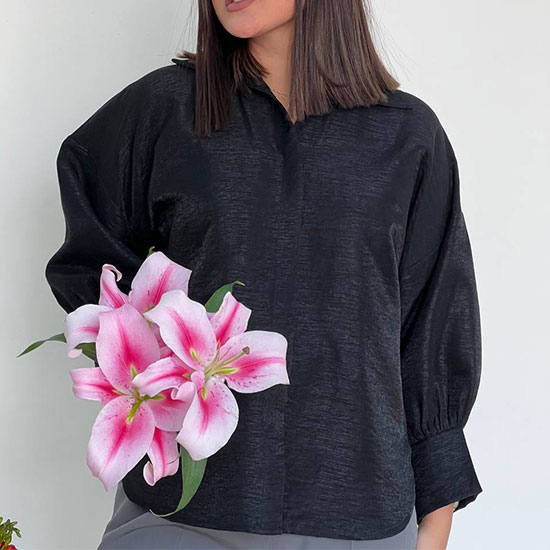 شومیزجنس کتان کریستالفری سایز تا ۴۴قد جلو حدودی ۶۰قد پشت حدودی ۷۰