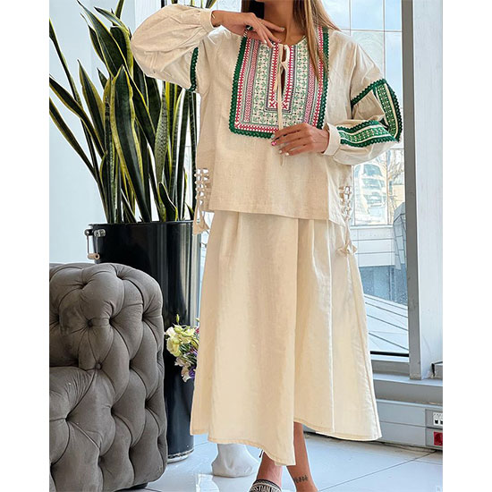 شومیزکد0041۷۹۵لینن هندیرنگ کرم با خرج کار سبز موجودقد تقریبی ۶۸فری سایز۳۶تا ۴۴دامن کد0042کالکشن تاستانقیمت ۶۹۰جنس لینن نخفری سایز۳۶ تا ۴۴کرم،مشکی،شیری،آبی،طوسی